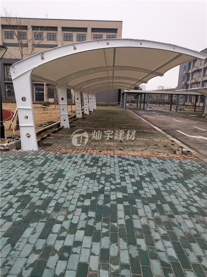 蘇州膜結構車棚廠家,燦宇定制室外膜結構停車棚,車棚材料選用了進口結構建筑材料。車棚骨架,表面處理采用進口船用底漆,炳烯酸聚氨酯面漆。防曬防紫外線,自潔性好,免清潔。 燦宇膜材料設計合理,其美觀性,防腐蝕性,堅固環保性都是車棚材料中的佼佼者。蘇州燦宇停車棚廠家承接各種膜結構車棚的定制,質量保證,電話咨詢價格從優!