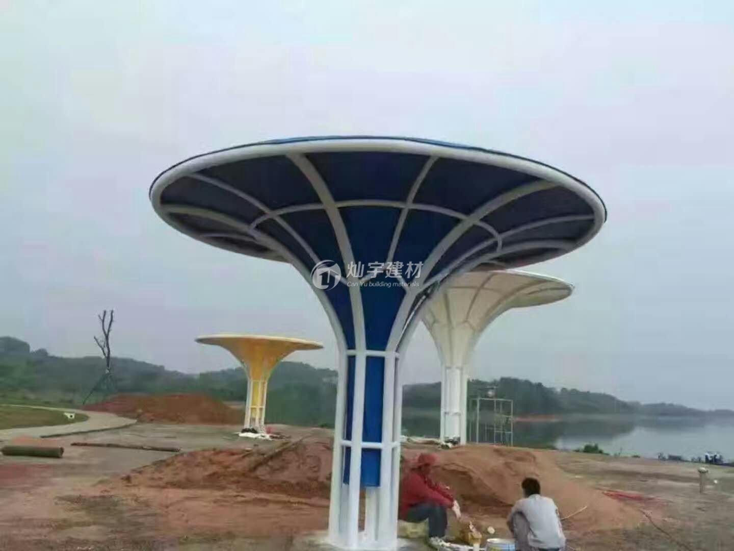 燦宇彩色膜結構景觀棚,還有其它顏色可選,紅黃藍綠青蘭紫迷彩色滿足不同客戶的個性需求 定做熱線400-799-8099蘇州燦宇車棚